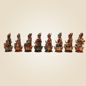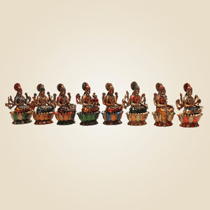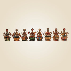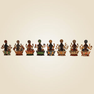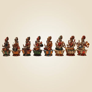 Measuring 3 inches each, this set of 8 is made on the Lotus base, which makes them look even more elegant and divine. As these are mini idols, they are perfect even for your Living room or your home temple, or other spaces like meditation room, study room, etc. It will also make a beautiful yet sacred gift for loved ones. Go ahead to gift it to friends and family and allow them to also welcome the divine blessings of Goddess Lakshmi.