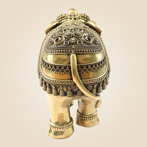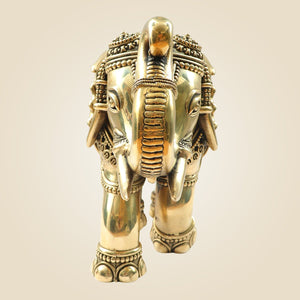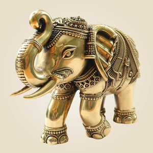 Brass Elephant Statue 8"- Big Size Handcrafted Showpiece in Superfine Finish