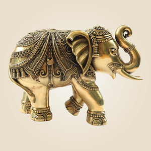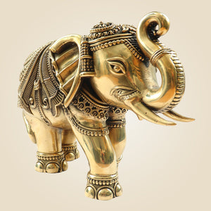 It shines with a rich golden glow, making it a stunning focal point for your living room, entryway, or workspace. According to Vastu Shastra, placing an elephant with an upward trunk brings good luck, wisdom, and positive energy into your life. Whether you're enhancing your home decor or seeking an auspicious gift, this brass showpiece is a perfect choice. Durable, elegant, and spiritually significant – this elephant statue is a powerful blend of art and ancient wisdom.