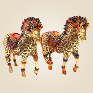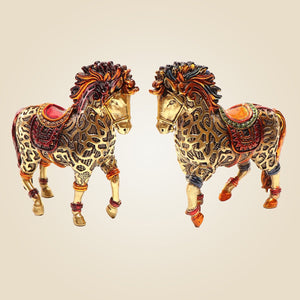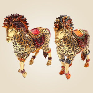 Brass Horse Pair Statue • Unique Vastu Decor Showpiece for Wealth & Speed 4.25"