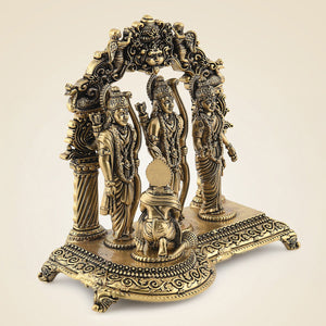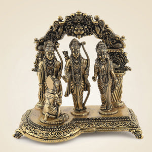 Made from high-quality brass, this idol not only adds a spiritual touch to your home but also elevates the decor with its timeless craftsmanship. Weighing just 300 grams, it is lightweight and easy to place anywhere, whether on your temple altar, shelf, or living room. Enhance your space with this stunning Ram Darbar Idol—bring home a symbol of strength, devotion, and divine blessings today!