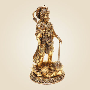 The 8-inch brass standing Hanuman idol on the Lotus base is one of the most unique yet powerful additions to any home. Made with superfine brass, this idol will bring along purity and calmness to your life and space. It is ideal for everyday worship by placing it in the home temple or to be placed in a meditation room, in the sacred section of the house, or for completing the festive setup for days like Hanuman Jayanti or any religious ceremony. Give this idol as a gift to the devotees of Lord Hanuman or the ones who want to walk on the path of spirituality and protect themselves from all negative and evil energies. It will be perfect for gifting on festivals and special occasions.