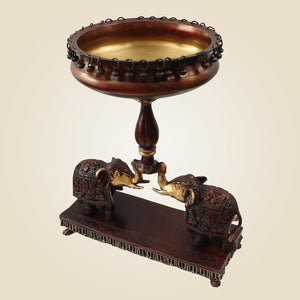 Brass Urli with Elephant Stand – 21" Handcrafted Décor for Festive Spaces