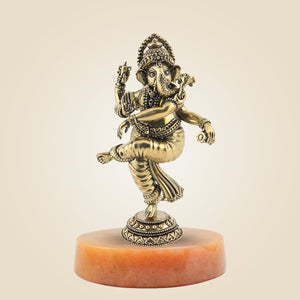 Dancing Ganesha Brass Idol 5"– Handcrafted Hindu Deity Statue