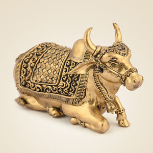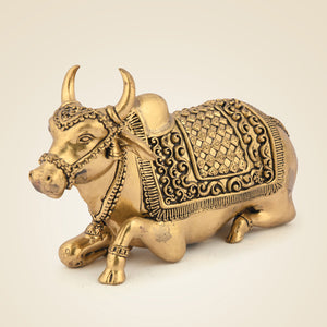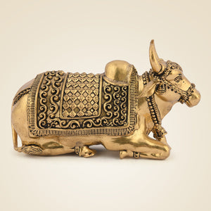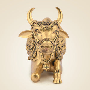 Invite divine energy into your space with this exquisite 2.75-inch Brass Nandi idol. Nandi, the holy bull and devoted vahana of Lord Shiva, is revered as the eternal gatekeeper and messenger of truth. Worshippers believe that praying to Nandi helps in fulfilling wishes, removing obstacles, and bringing spiritual clarity.