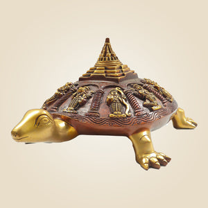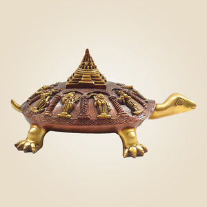 Exquisite Brass Dashavatara on Tortoise Figurine 5.75– Traditional Indian Spiritual Décor