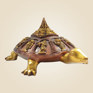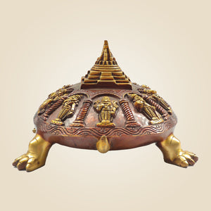 Brass Dashavatara on Tortoise Figurine stands at 5.75 inches and embodies the divine essence of Lord Vishnu’s ten avatars. The figurine is set on a tortoise base, symbolizing stability and protection. Its intricate detailing is enhanced by a butter polish finish, which adds a radiant, lustrous glow to the piece, making it a striking addition to any space. Ideal for spiritual settings, this piece reflects the balance between change and stability, offering a serene, sacred aura to your home or office.