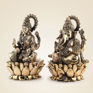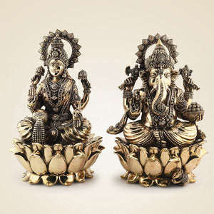 Ganesh Lakshmi Brass Idol 12" – Handcrafted Superfine Decor Statue
