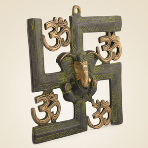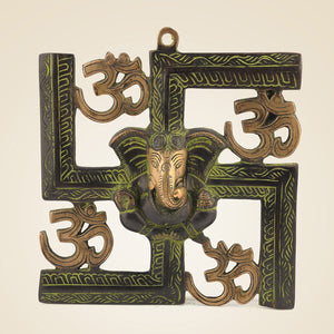 Ganesh Swastik Wall Hanging 8" Artisan– Handcrafted Pure Brass