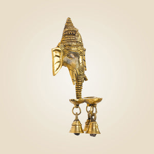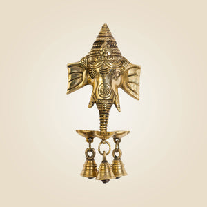 Ganesha Hanging Brass Diya – 8.5" Handcrafted Oil Lamp
