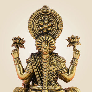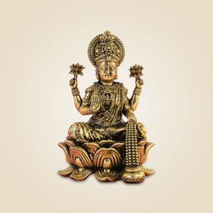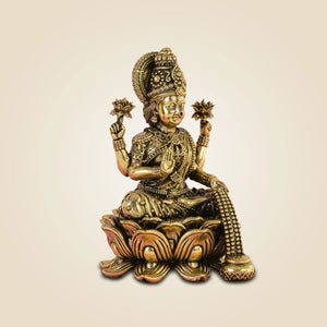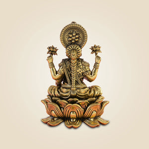 Open doors to abundance in your life by placing the handcrafted brass idol of Goddess Lakshmi. This 5-inch Murti will be perfect for your home temple, as a decor piece, or an addition to your brass collection pieces. Use it for everyday worship rituals or during festivals like Lakshmi Pujan or Diwali. Welcome prosperity into your life by placing this at your home or office space.