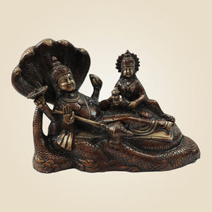 Hand Painted Brass Lakshmi Narayan Idol on Sheshnag 7 " | Temple & Home Statue