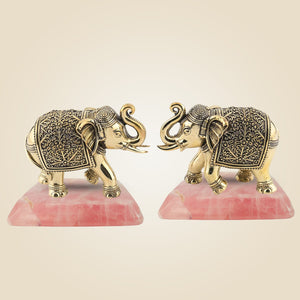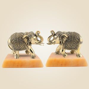 In Indian traditions, elephants are considered sacred, and they are known to represent strength and wisdom. This elephant pair measuring 3 inches is made using brass and brings along a lot of positive and good vibes. In this piece, you will be able to see precise detailing of elephants. The tusks of the elephants with other details, make the pair look extremely majestic, and they will elevate the look of any space they will be kept in. It is not only made using premium-quality brass, but it is lightweight as well. This makes it easy for people to place it anywhere, at their convenience. Use this piece both as a Vastu remedy and a beautiful decor item for your space, and witness the magical changes in your life. It can also be a meaningful and elegant gifting option. Gift it to your loved ones on special occasions or festivals like Diwali, or any religious ceremony.