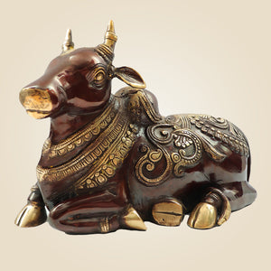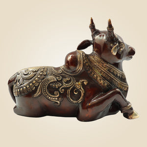 Home Heavy Brass Nandi Idol 9" Inch | Sacred Bull of Lord Shiva for Temple & Home Decor