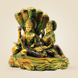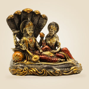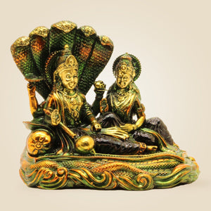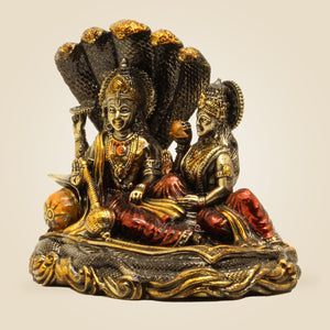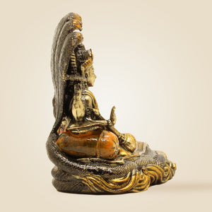 Lakshmi Narayan Brass Idol 3.75"– Seated on Sheshnag Lightweight Statue