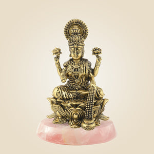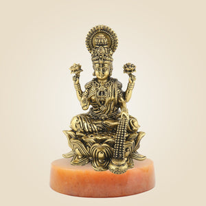 Laxmi Maa on Lotus Idol- 4.25" Handcrafted Brass Wealth Statue