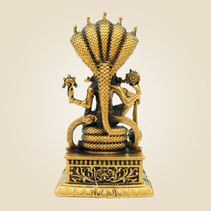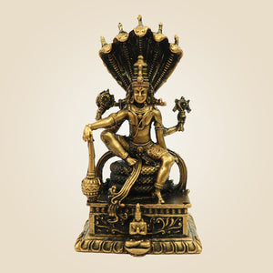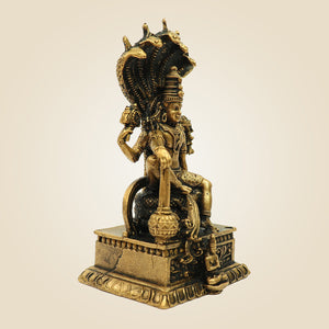 Lord Vishnu Bronze Idol on Sheshnag Throne 3.30" - Unique Statue
