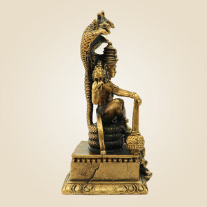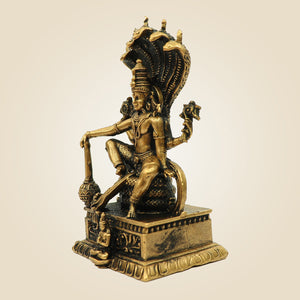 Make your home a graceful and divine space by placing the Lord Vishnu bronze idol on the Sheshnag Throne. This idol measures 3.30 inches and represents the protection and cosmic balance. It is one of the most timeless idols to be added to any space, and it works as a decorative piece and a sacred idol for your home. This idol is made using bronze and is compact, which makes it ideal even for smaller spaces.