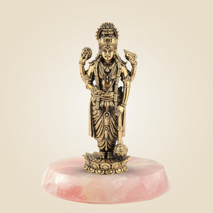 Open doors to the blessings and Ora of Lord Vishnu with this 6.75-inch pure brass idol. In this Idol, Lord Vishnu is standing on a Lotus pedestal. Invite peace and sacred vibes to your home with this Idol.