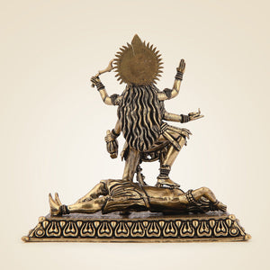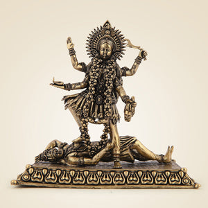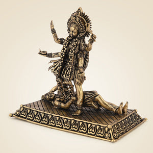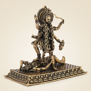 Experience the divine power of Mahakali with this exquisite brass sculpture.
