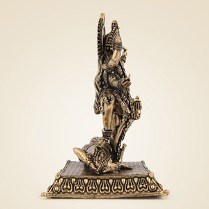 Invite the divine blessings of Mahakali, the fierce and protective form of the goddess Durga, into your home with this exquisite brass sculpture. Meticulously crafted, this statue captures the essence of the warrior goddess, her fierce expression and powerful stance symbolizing her role as a vanquisher of evil.