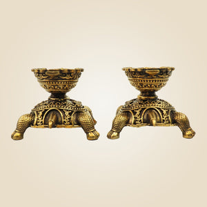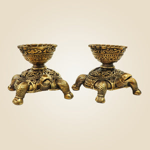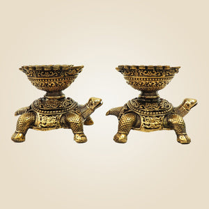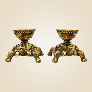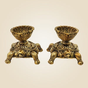 Home Pair of Brass Turtle Diyas 2.5" | Traditional Tortoise Oil Lamps for Temple & Home
