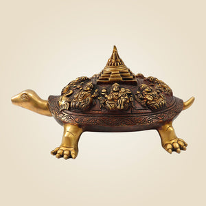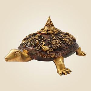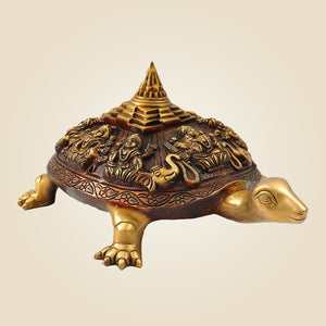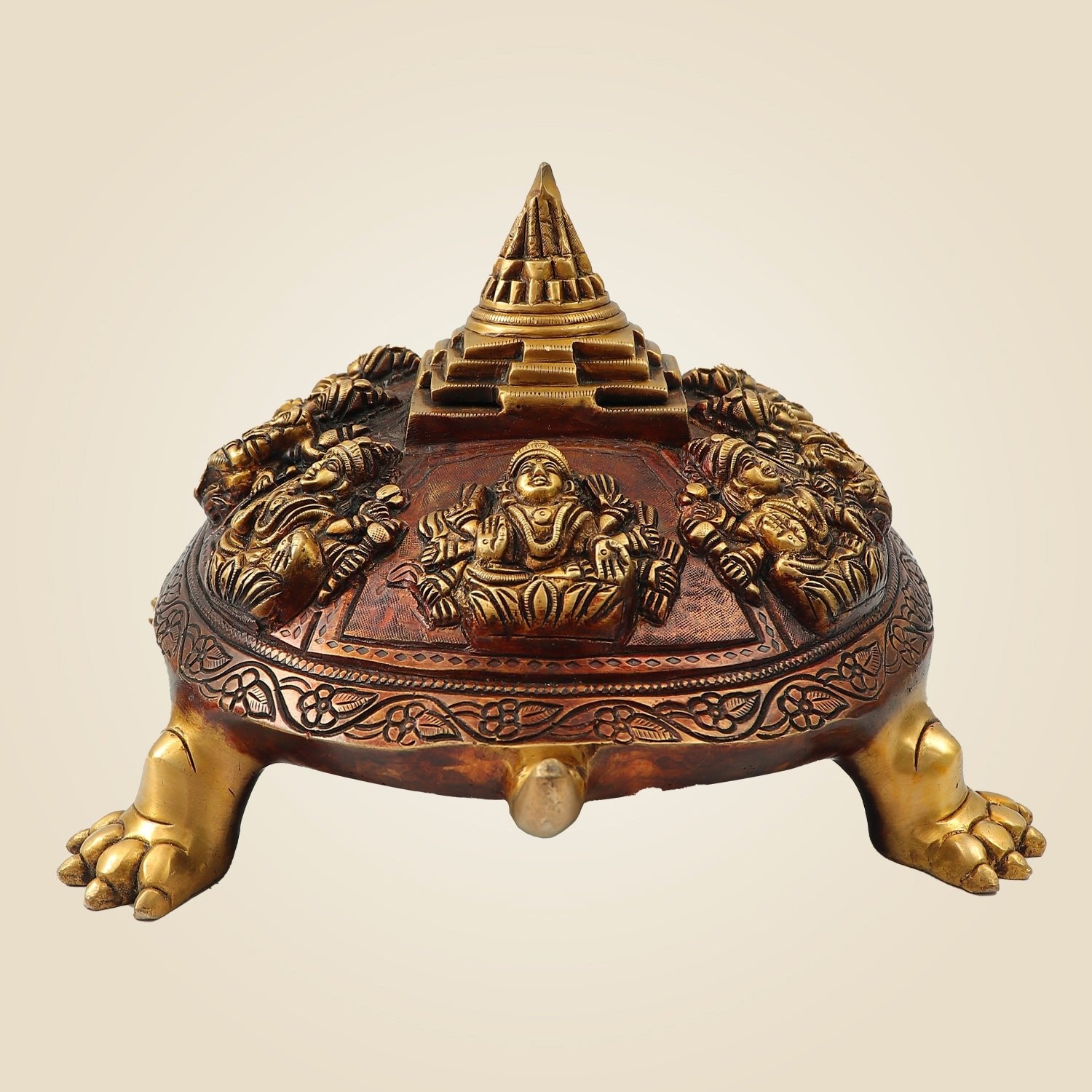 Brass Ashtalakshmi Shree Yantra on Tortoise Figurine 5.75" – Unique Vastu Home Décor