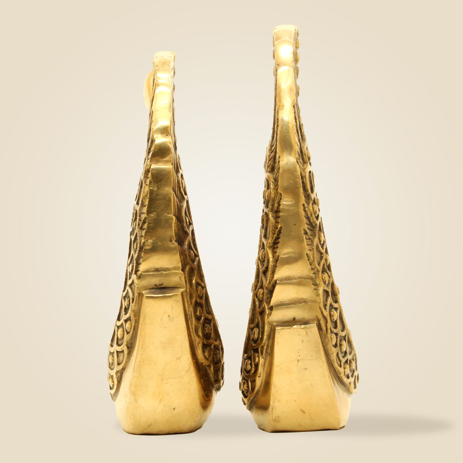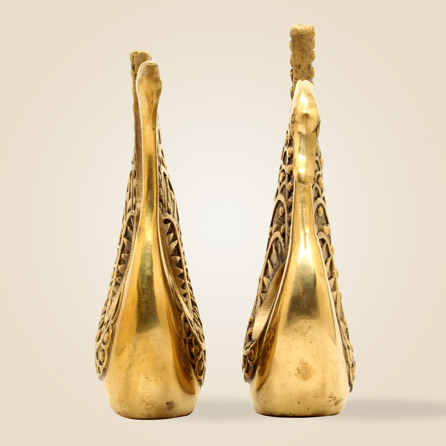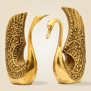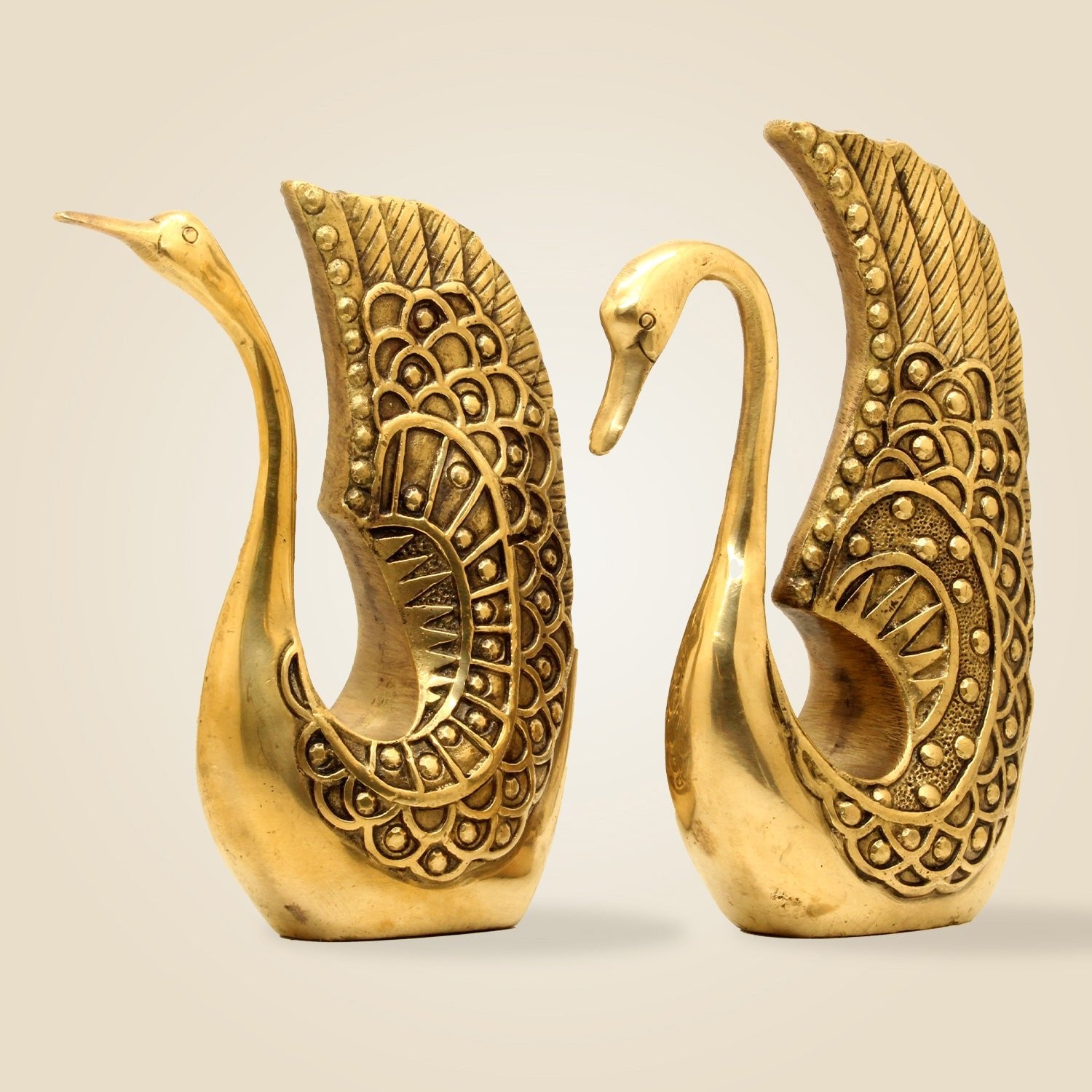 Add elegance to your space with this 9.75 inch Pure Brass Swan Statues Pair, super finely handcrafted with precision. Depicts intricate carved patterns on their wings and a flawless golden finish, giving them a luxurious charm. Swans are considered as symbols of purity and eternal love in Indian tradition and Vastu Shastra.