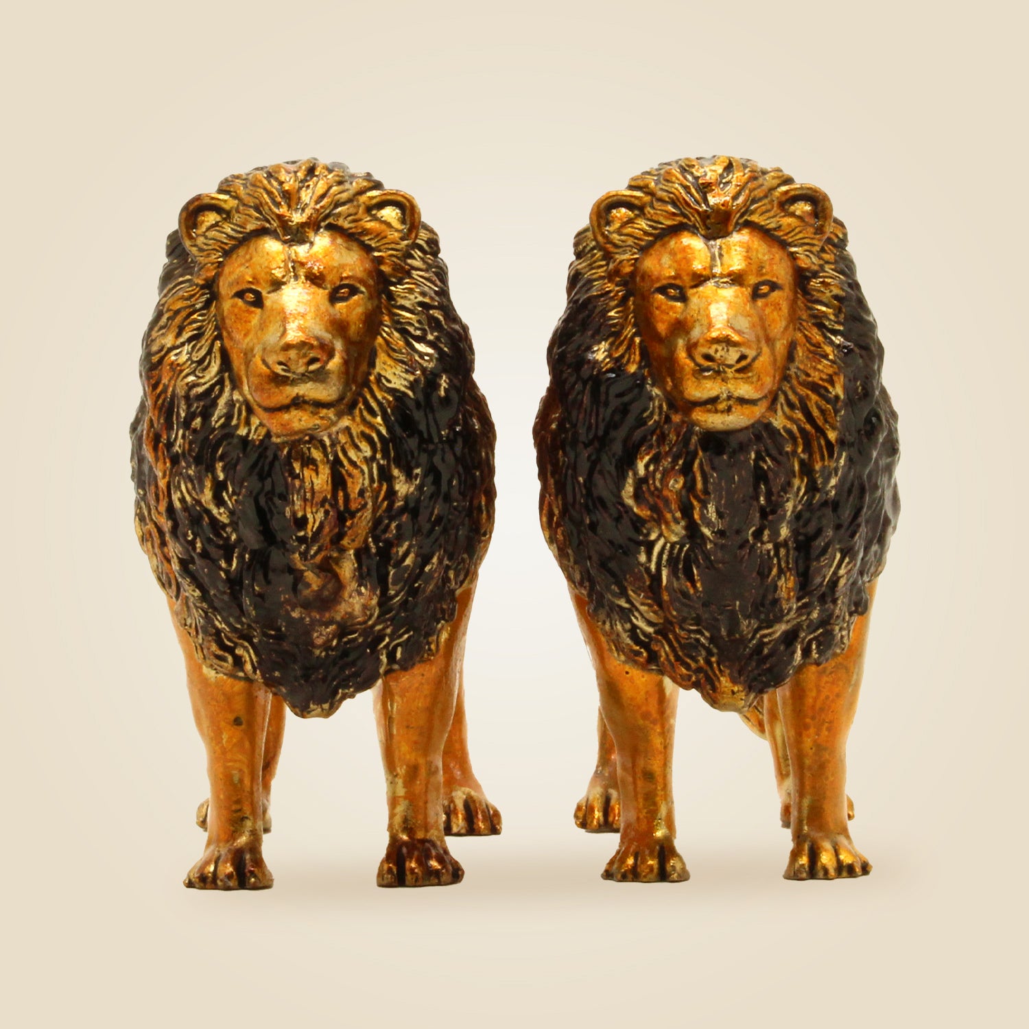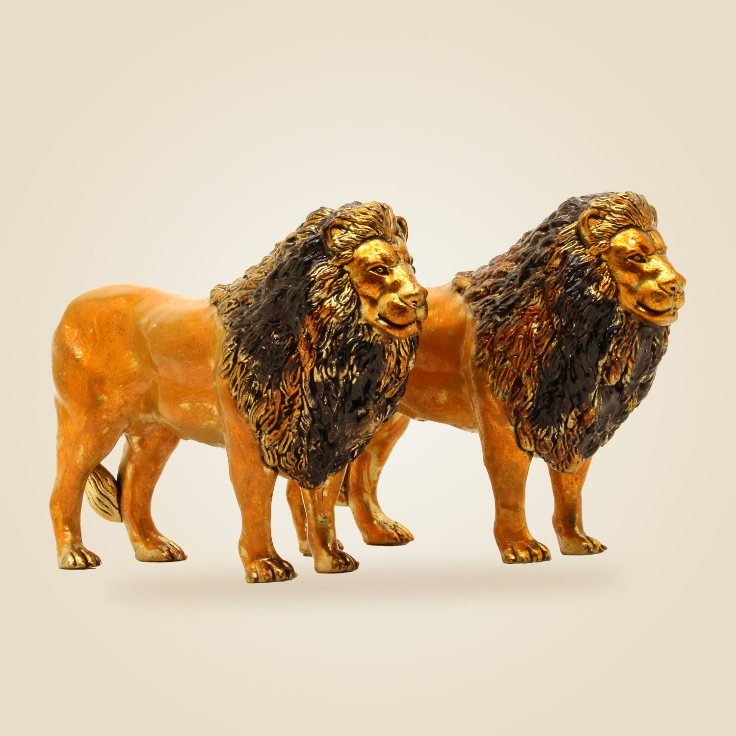 Regal Lion Pair Brass Figurine – 3.75" Handcrafted Idol Vastu Décor for Home, Office & Gifting