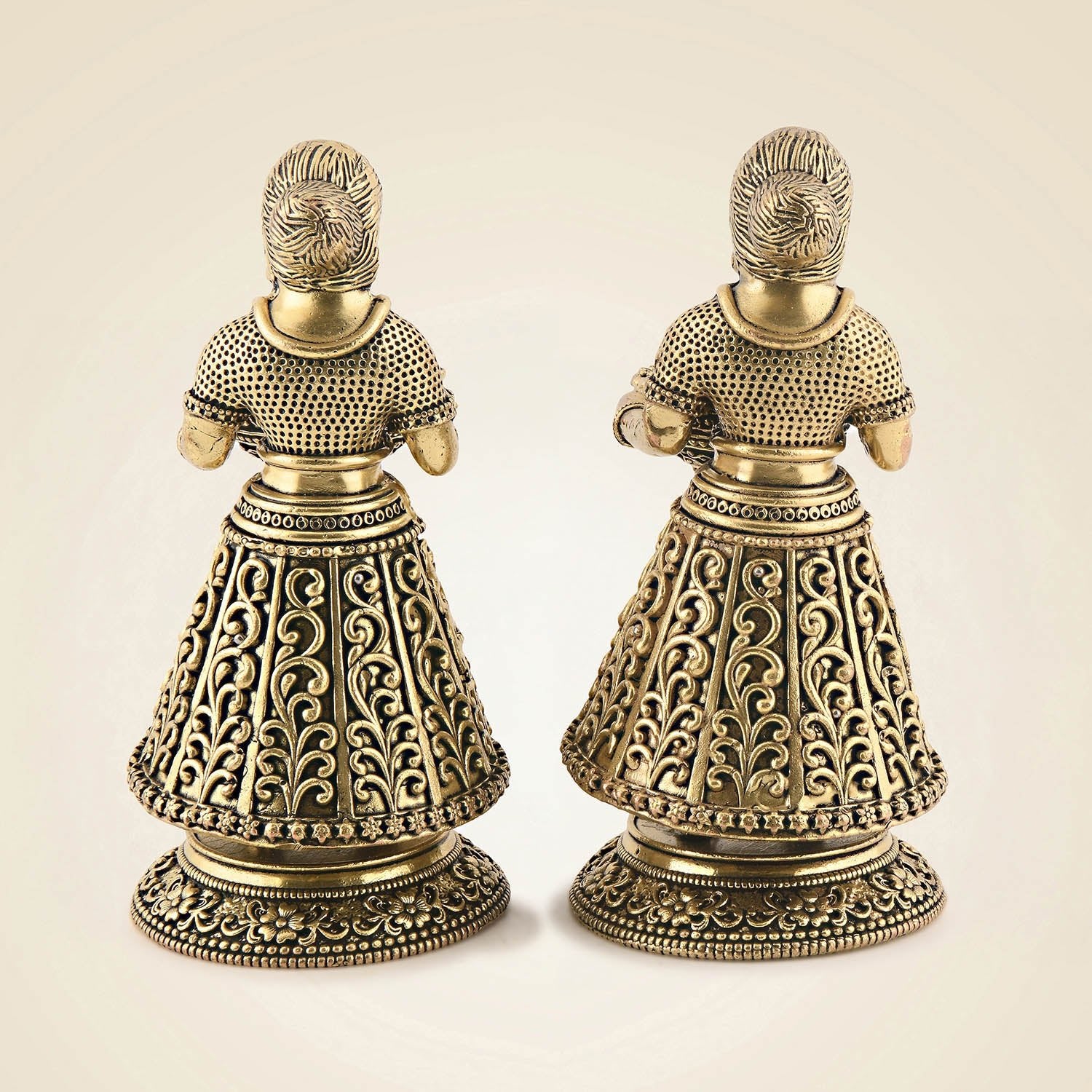 This 4.75-inch and 545 gm traditional Brass Deep Lakshmi Pair is a graceful blend of devotion and craftsmanship. Lighting a Deep Lakshmi is believed to remove darkness, both literal and spiritual, and attract wealth, success, and divine blessings. These lamps are lit during aarti, pooja, and festive occasions like Diwali, symbolizing the illumination of the mind and soul and the invitation of abundance and positive energy into the home.
