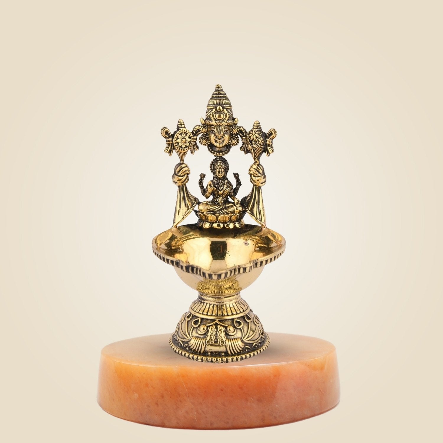 Welcome divinity and divine lighting to your home by placing the Balaji and Lakshmi brass Diya. This oil lamp is suitable for all types of settings, like the Pooja room, everyday aarti, festive setup, and other occasions as well. Furthermore, it is crafted by skilled artisans, and the work on this Diya is extremely precise and looks stunning. This diya is a reflection of cosmic balance as it is Brass Balaji and Lakshmi Diya.