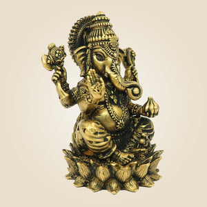 Lord Ganesha is worshipped as the “remover of obstacles”. Those who worship Lord Ganesha can fill their life with prosperity and good luck. Bringing the Lord Ganesha bronze Idol is going to be both a spiritual and auspicious addition to your space. Measuring 3 inches, this divine Murti is not just perfect for your home Temple, but also for spaces like the sacred section, as a vastu remedy piece, or even for a meditation space.