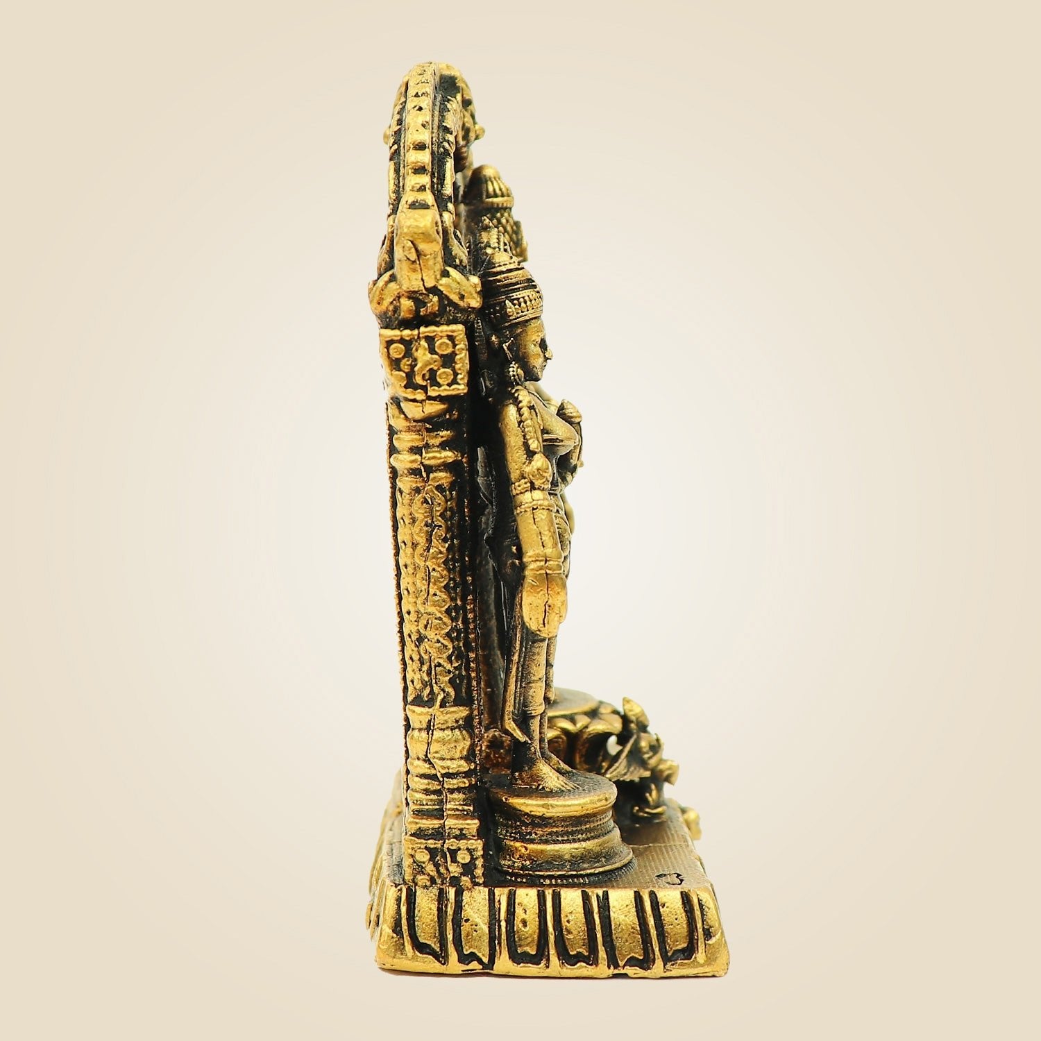 • Durability: Brass is resistant to corrosion and tarnishing, ensuring that idols retain their beauty and integrity over time, even with regular handling and worship. This durability makes brass a lasting and reliable choice for home temples, as the idols remain pristine and vibrant for many years.