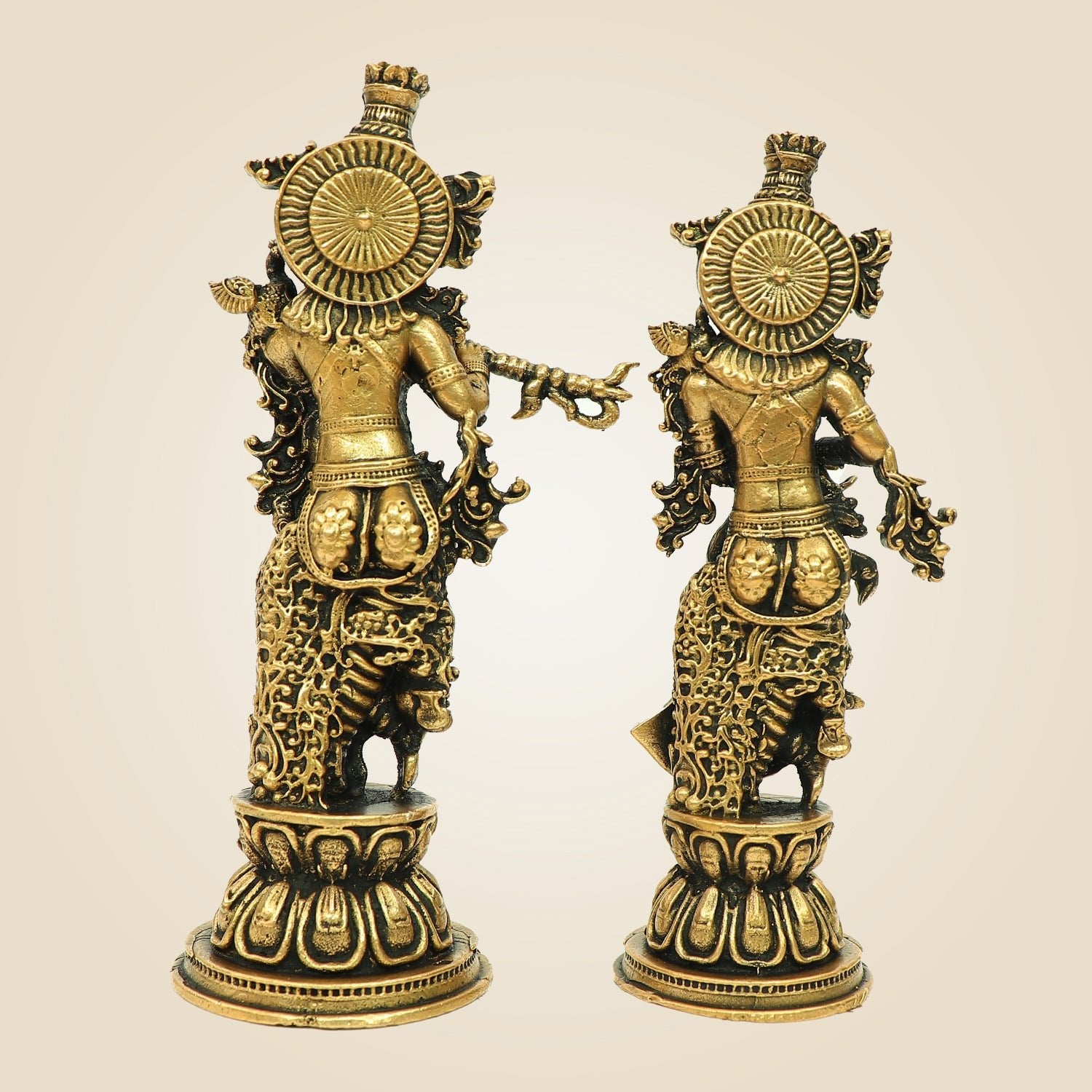 Superfine Radha Krishna Bronze Idol – South Indian Divine Couple Murti 4.75"