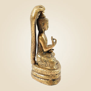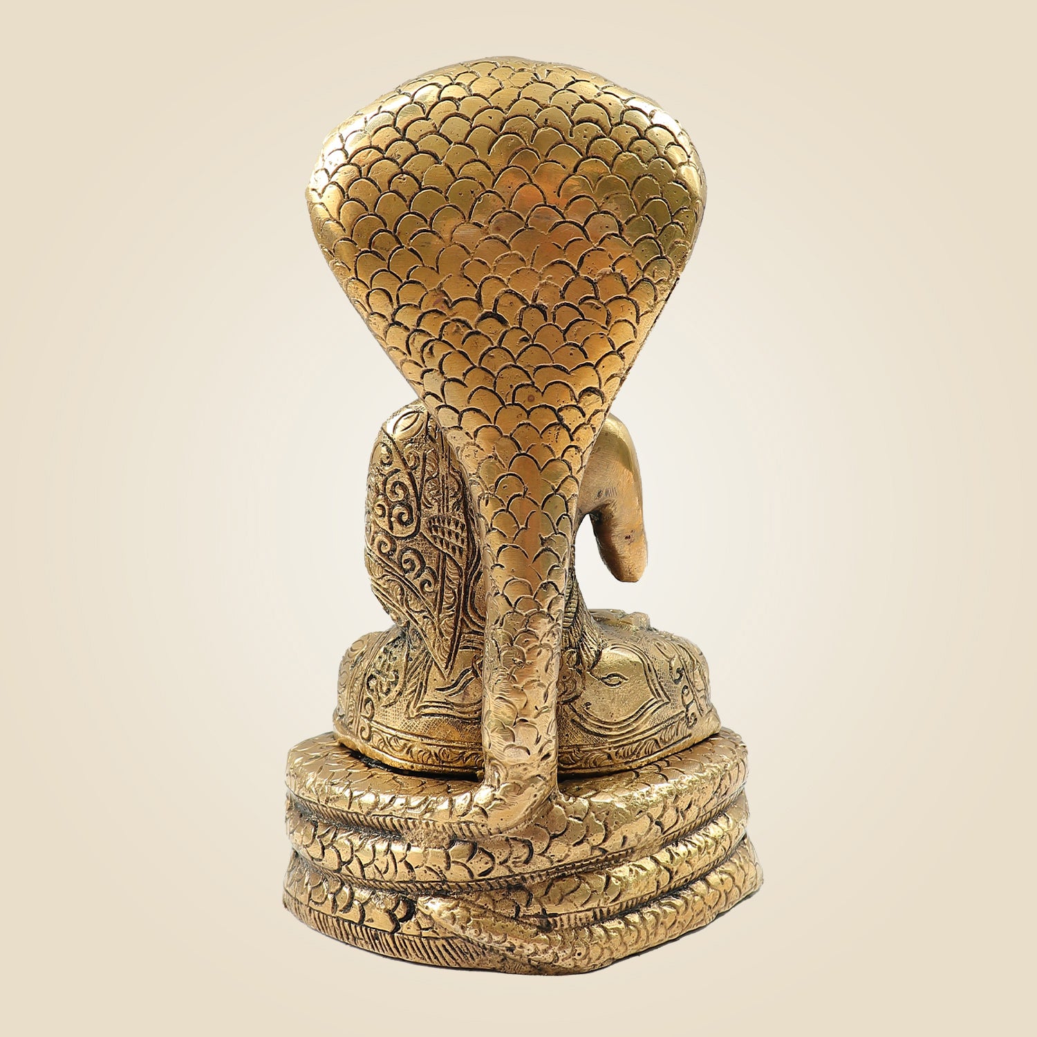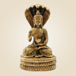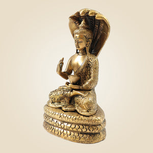 Serene Brass Buddha under Naga Hood – Spiritual Idol for Home & Temple 7.75"