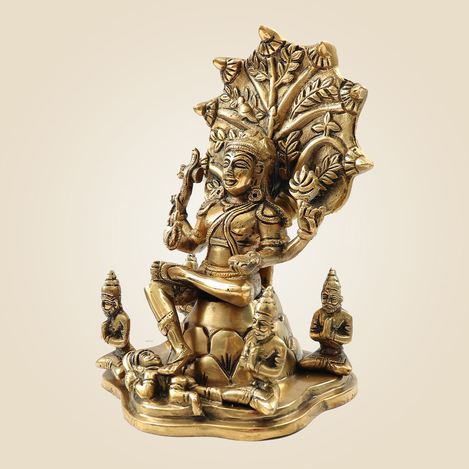 Celebrate silence and self-realization with this handcrafted Brass Dakshinamurthy Idol, portraying Lord Shiva as the eternal teacher. Seated beneath a sacred tree and surrounded by sages, Dakshinamurthy represents the divine source of knowledge and truth.