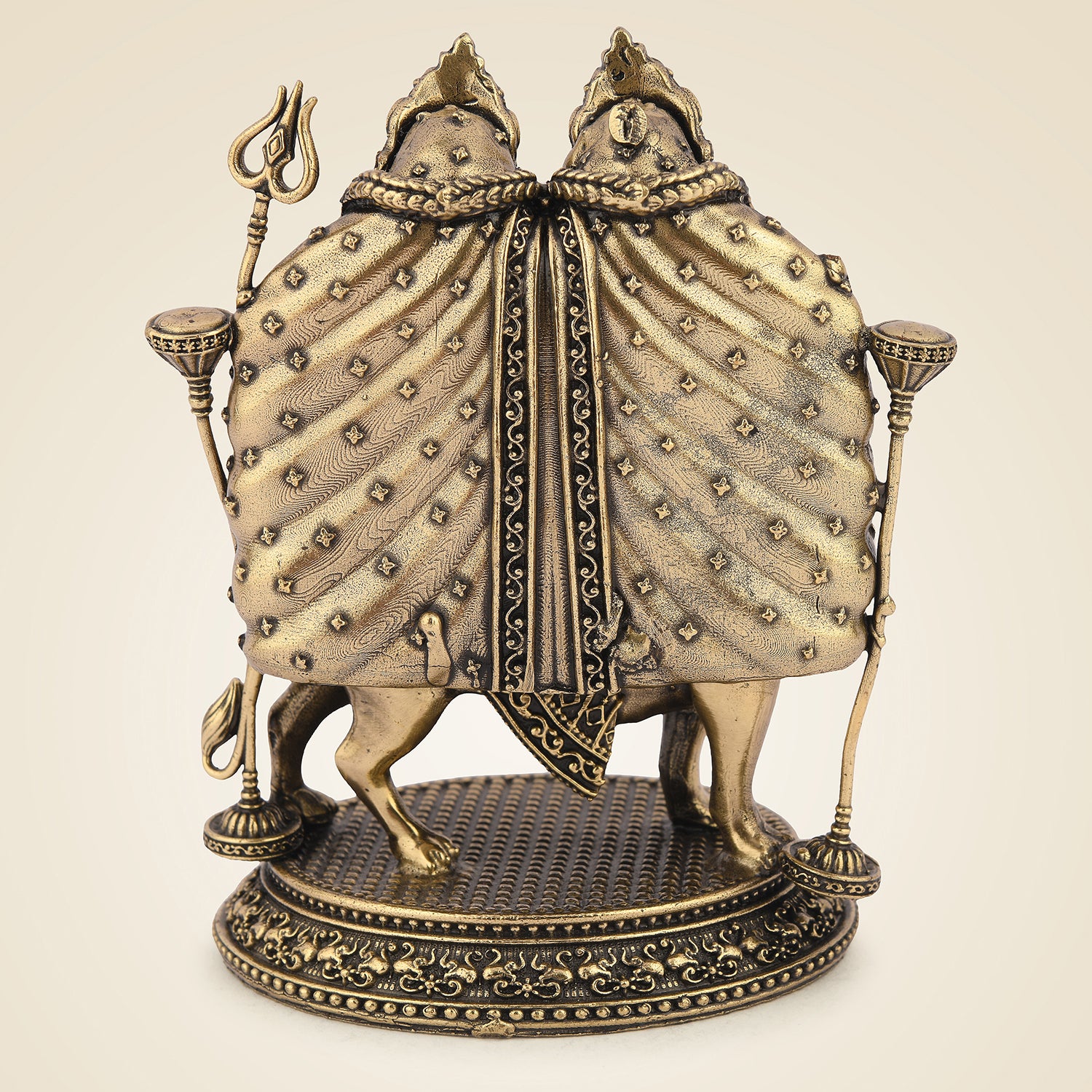 Induce divine strength into your home with this handcrafted 4.75-inch Chamunda Mata Brass idol. She is known as one of the fiercest manifestations of Goddess Durga. Chamunda Mata symbolizes victory over evil, the removal of negativity, and the ultimate power of Shakti. This idol depicts the fine detailing, right from the expressive features of the Goddess to the majestic lion she rides.