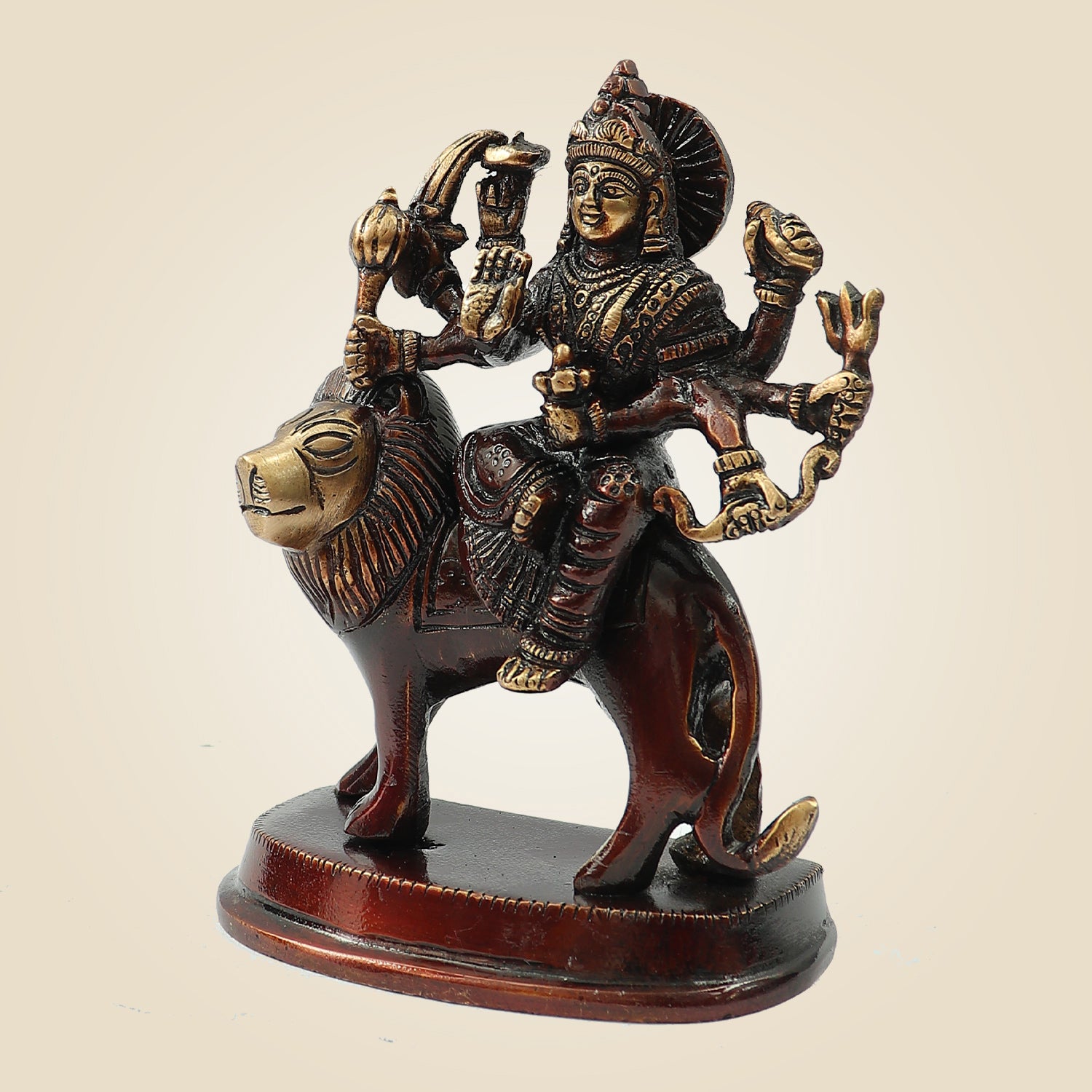 5.25" Brass Durga Maa Idol on Lion – Powerful Simhavahini Goddess Statue for Navratri Puja