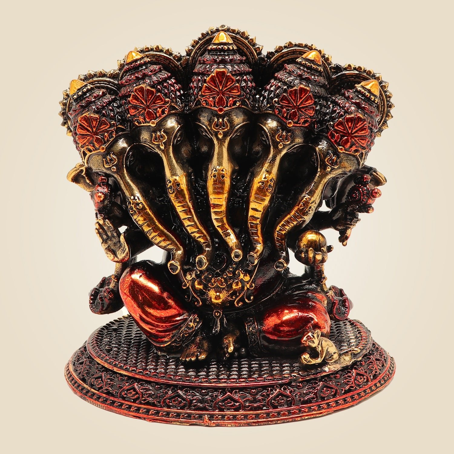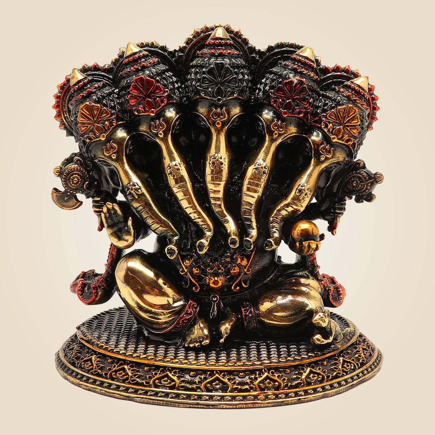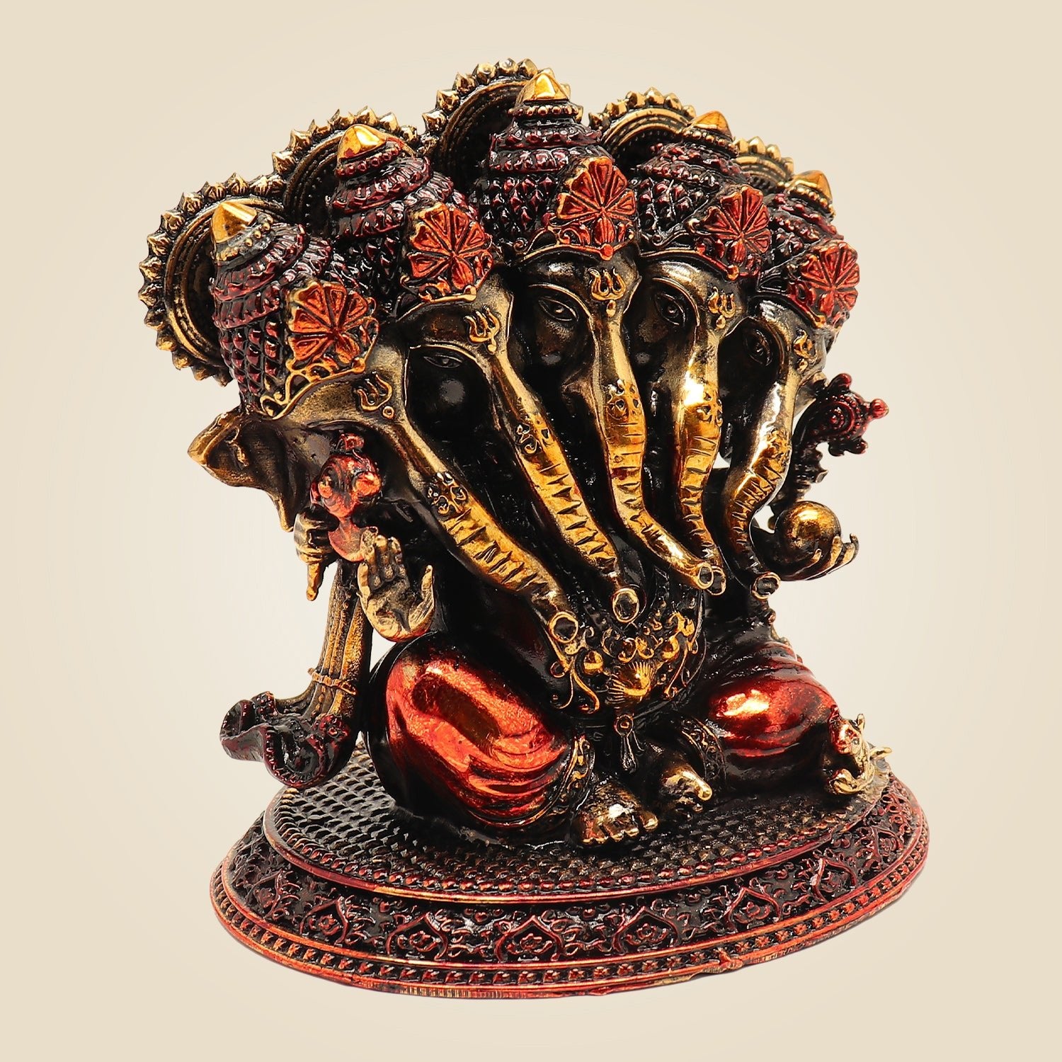Handcrafted Pure Brass Panchmukhi Ganesh Sculpture 4.5"– Lightweight Artisan Idol