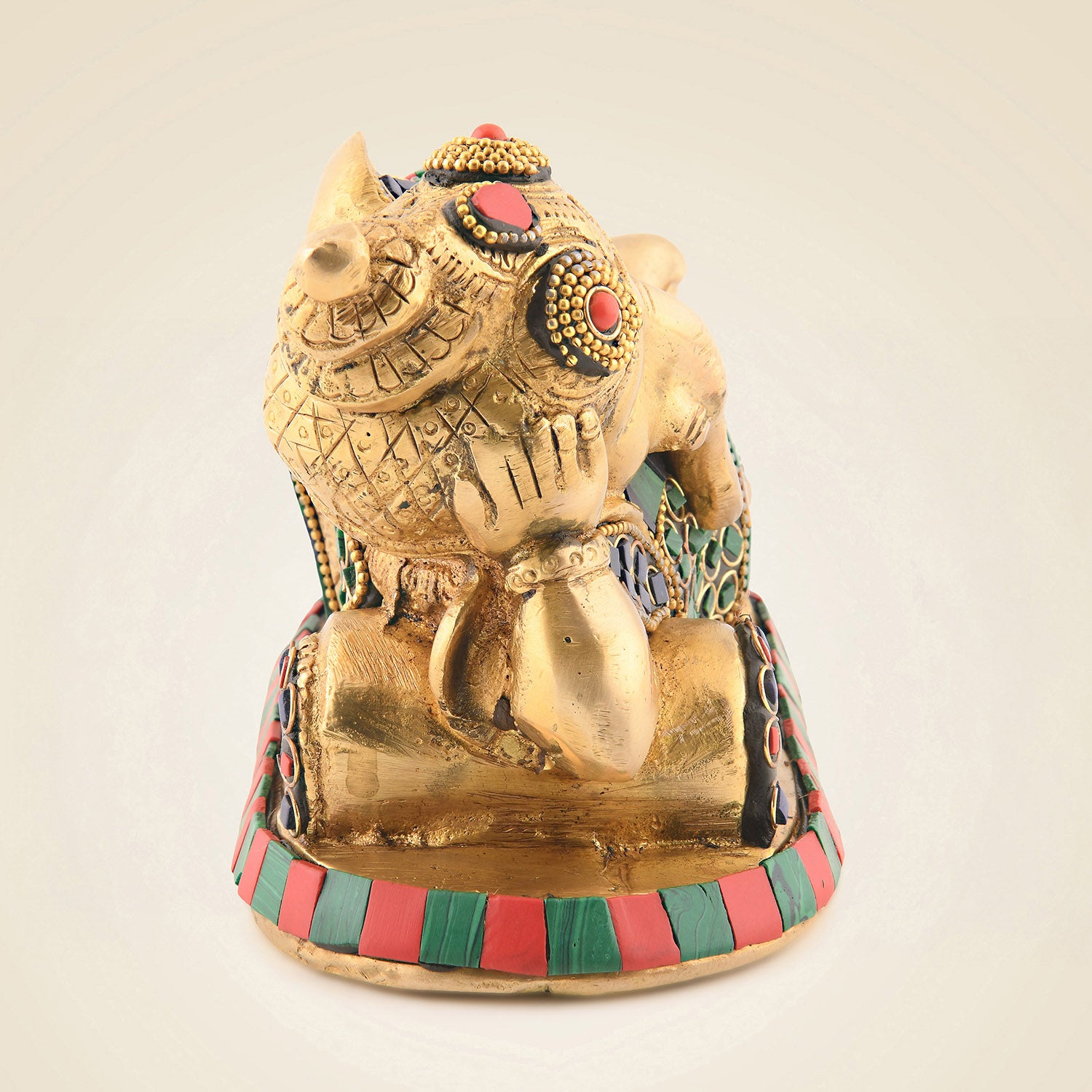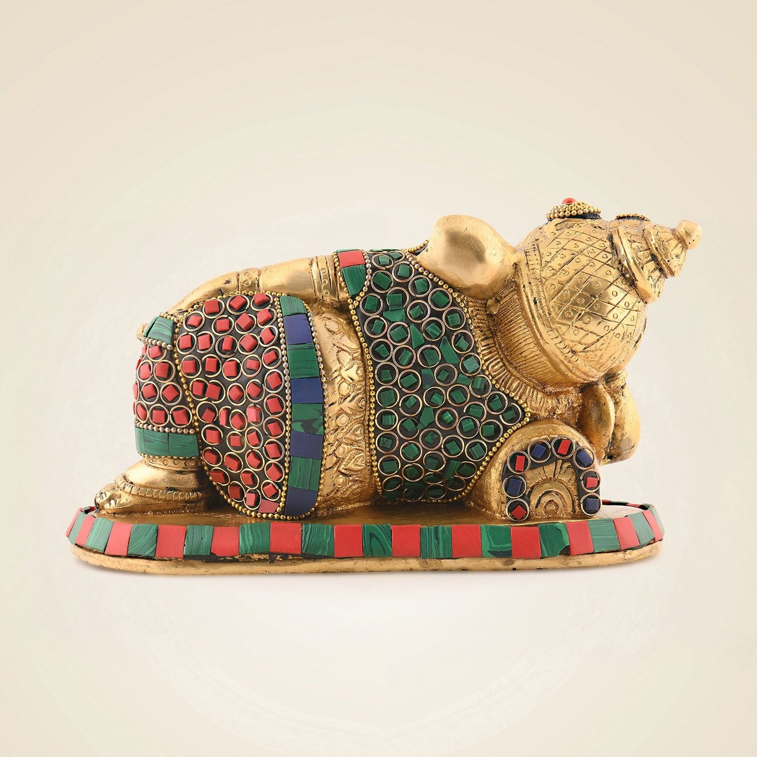 Relaxing Ganesha Brass Idol 4.5″ – Multicolor Stone Work Handcrafted Murti