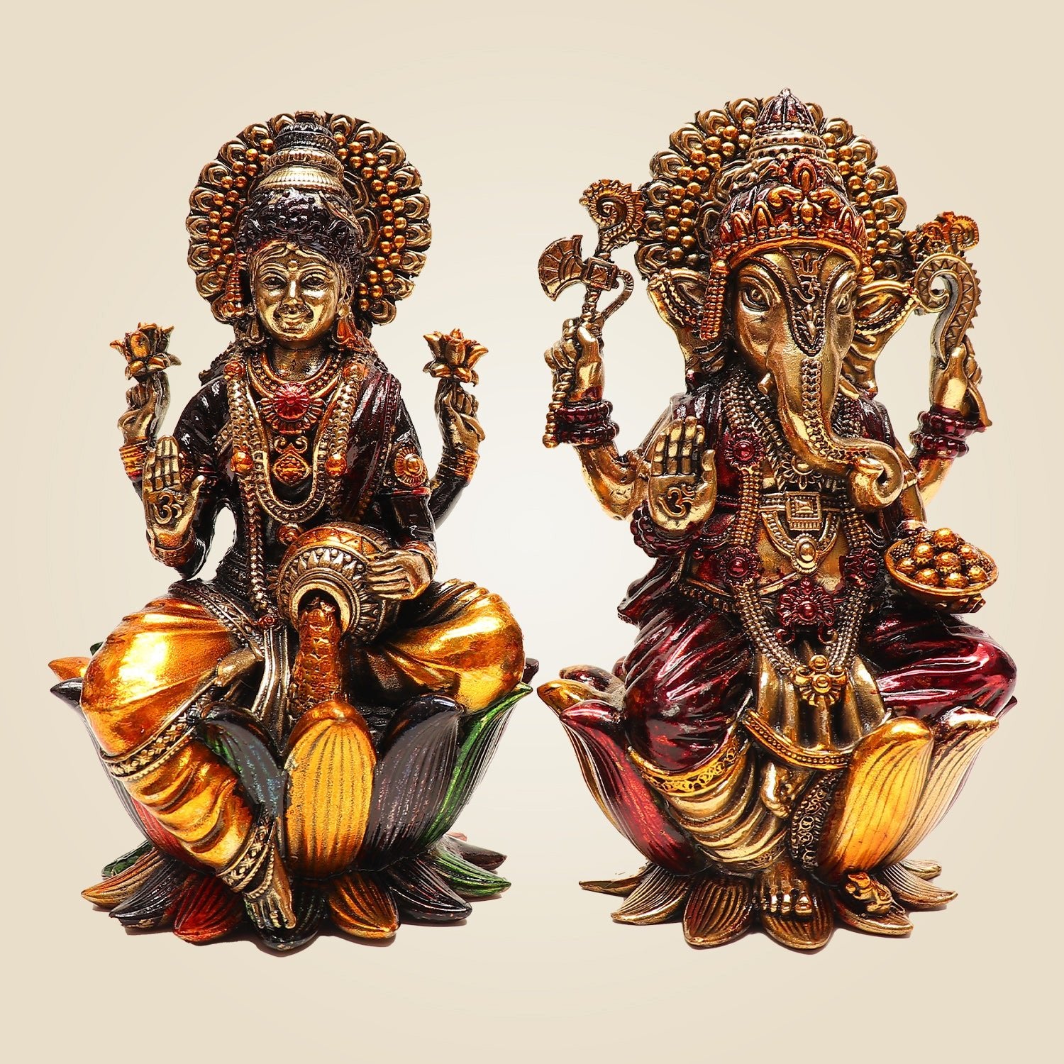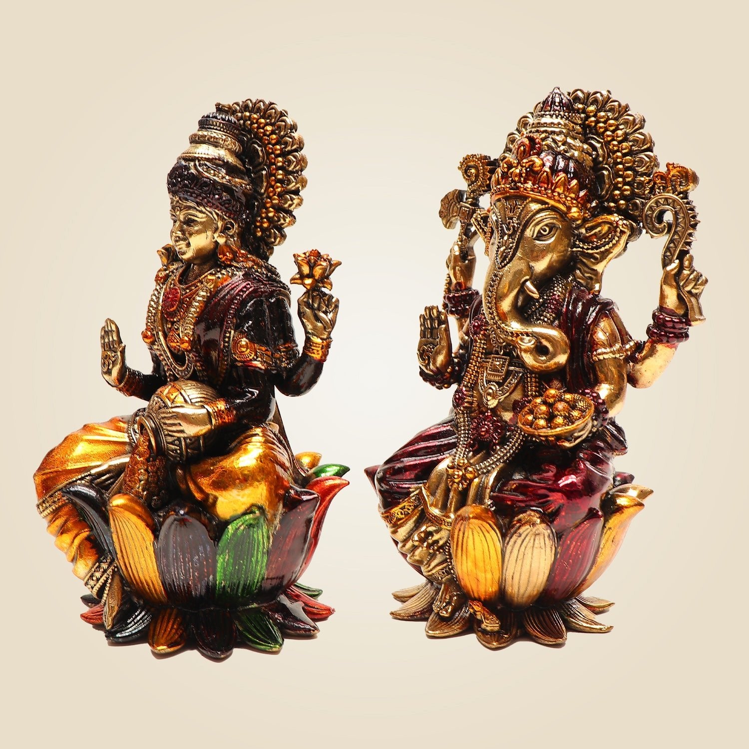 Pure Brass Lakshmi Ganesh Set 6" – Lightweight Handcrafted Idols on Lotus Base