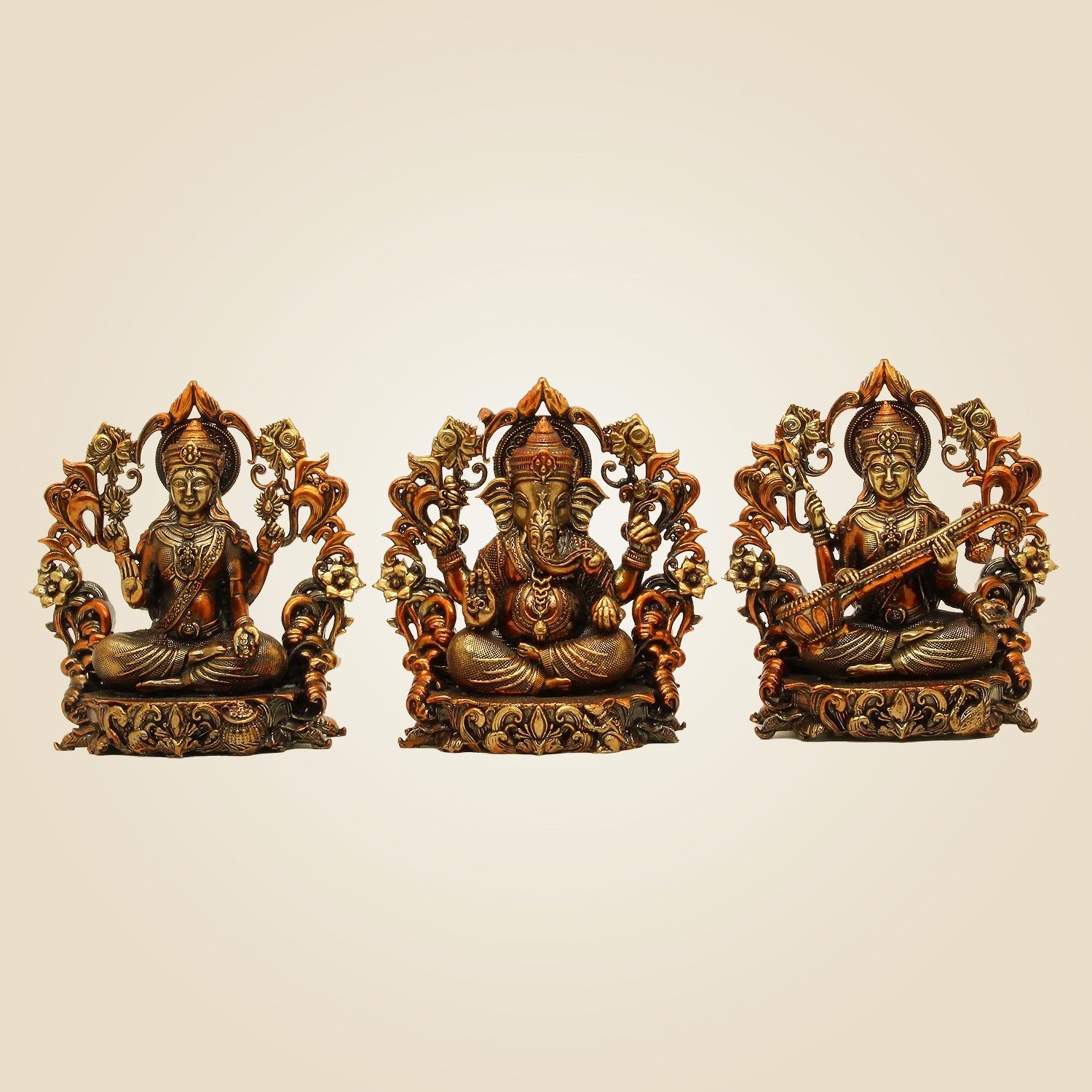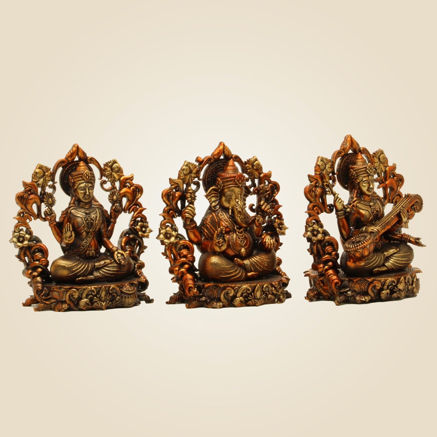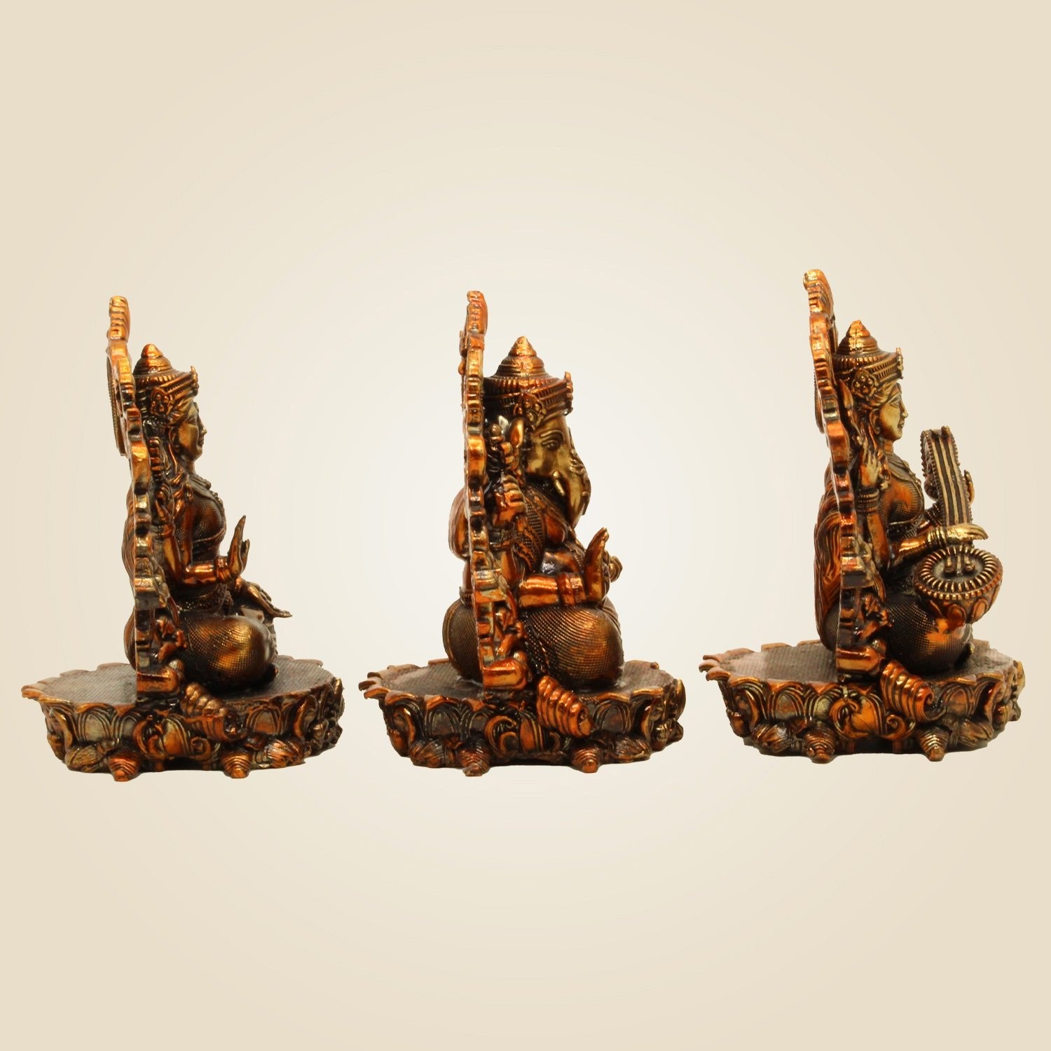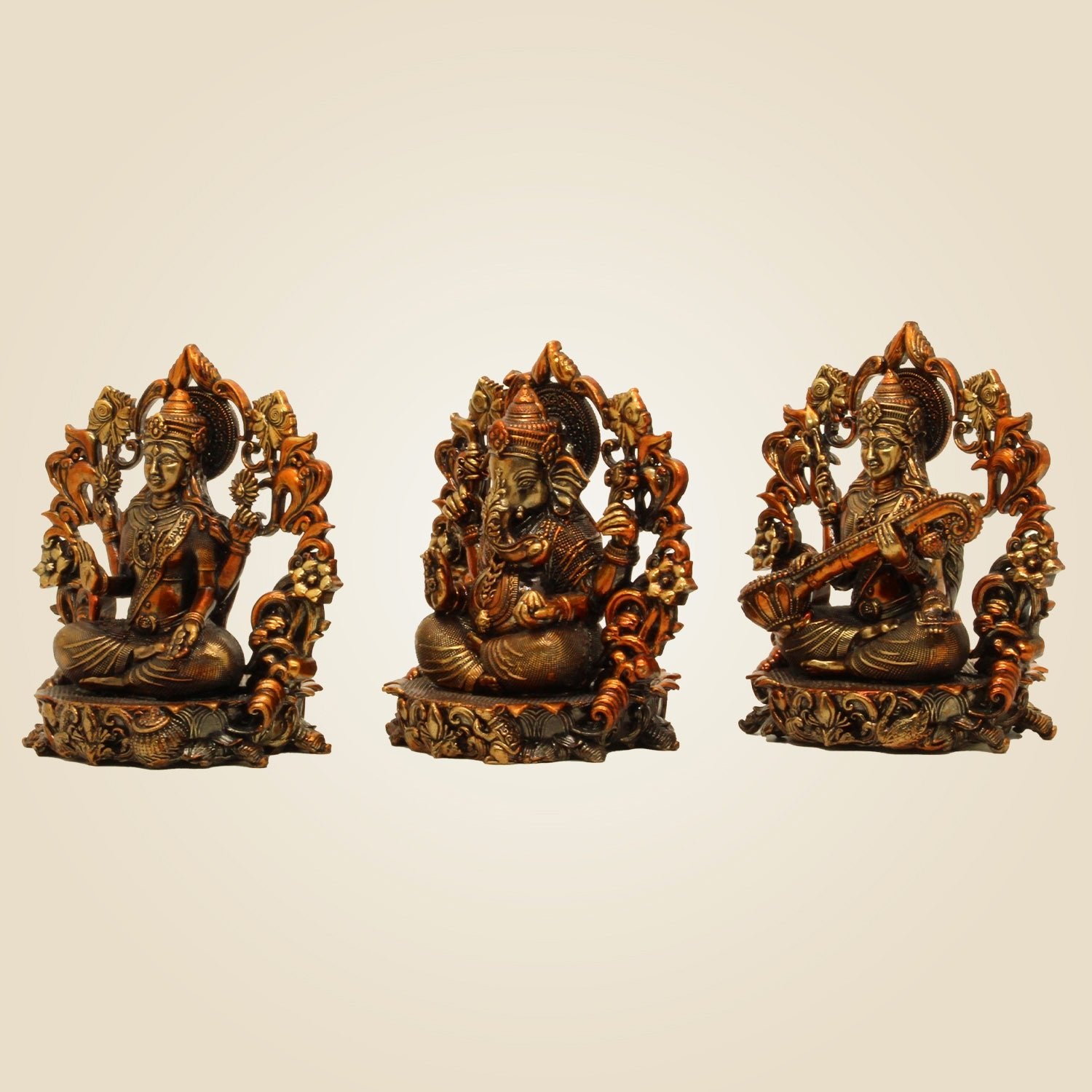 Laxmi Ganesh Saraswati Brass Idol – 3.75" Handcrafted Murti