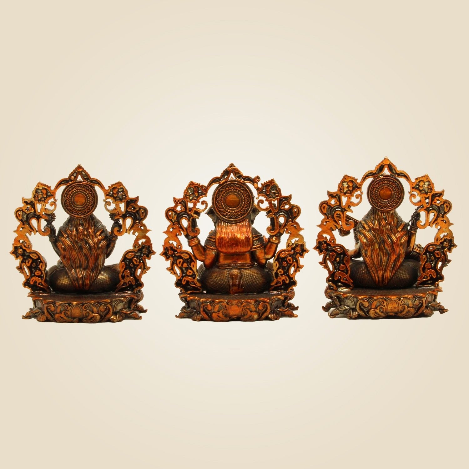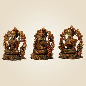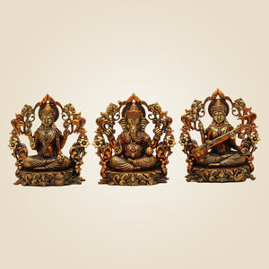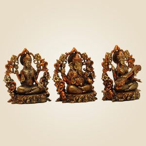 The 3.75-inch Lakshmi Ganesh Saraswati brass idol is a divine idol that will elevate the whole look of your space. It is a handcrafted brass idol, therefore, it is a durable and long-lasting piece. Its compact size makes it perfect even for small pooja spaces, shelves, table tops, and even other smaller areas of the home. By worshipping these three Hindu Gods every day, individuals will see the magical changes in their lives and also purify the home's environment.