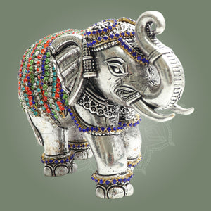 3.5" Silver Plated Brass Elephant with Fine Jewellery Stone Detailing