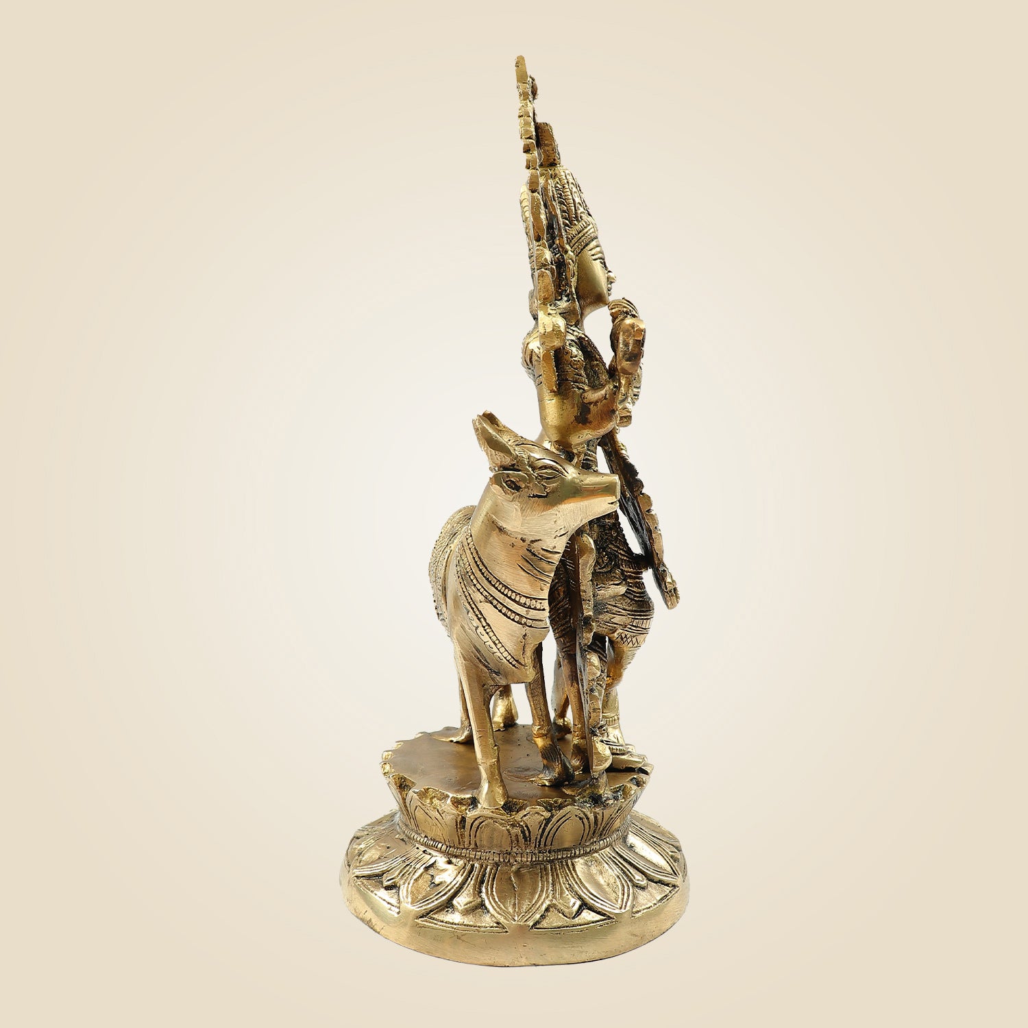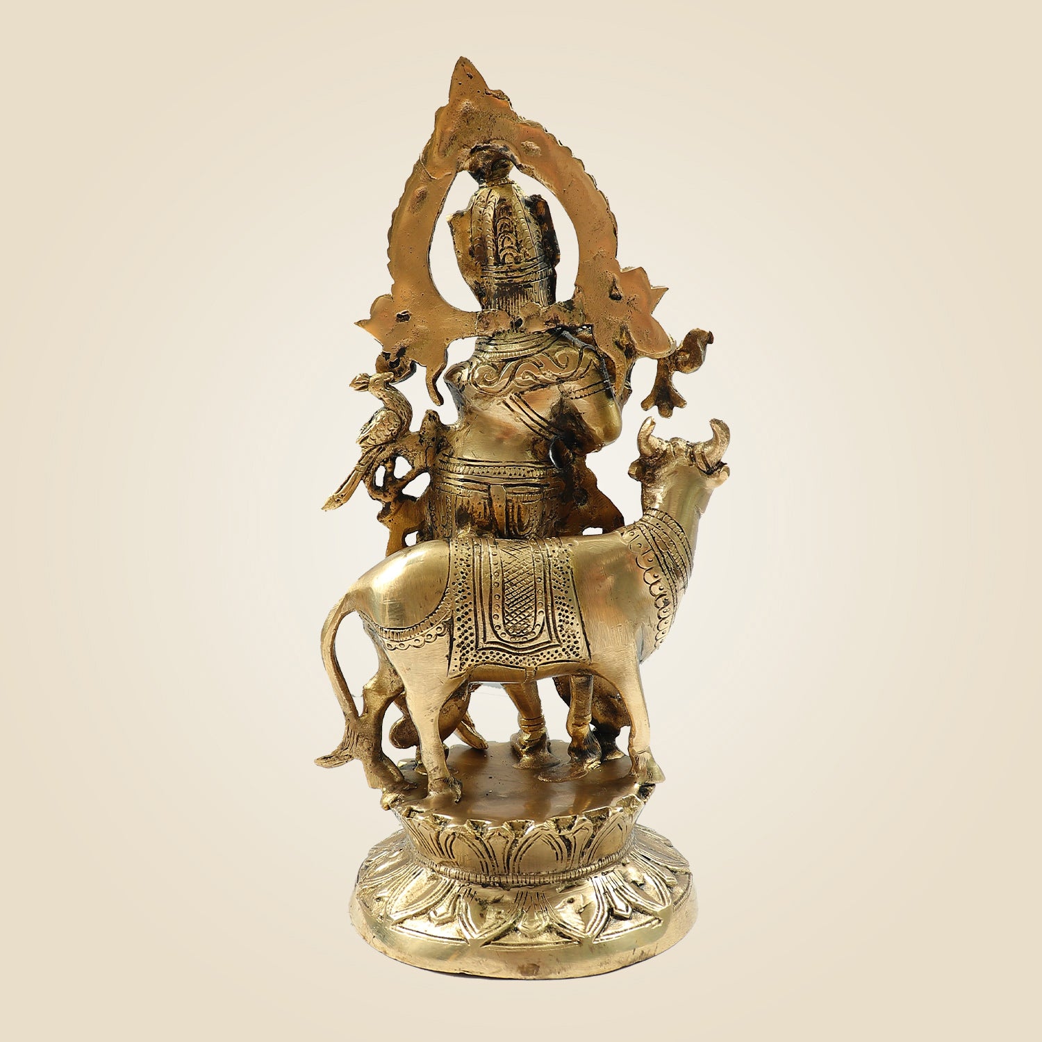 Lord Krishna Brass Idol – Murari Krishna with Cow Handcrafted Murti 12"