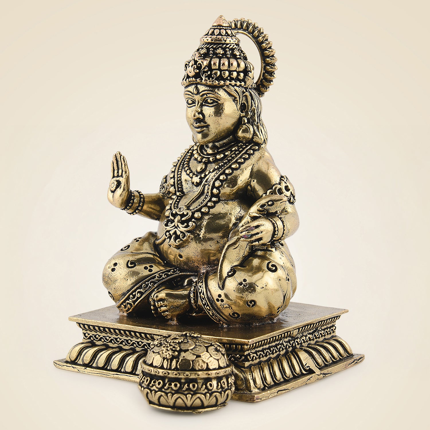Lord Kuber Brass Idol 3.75"- Handcrafted Superfine Statue for Wealth & Fortune