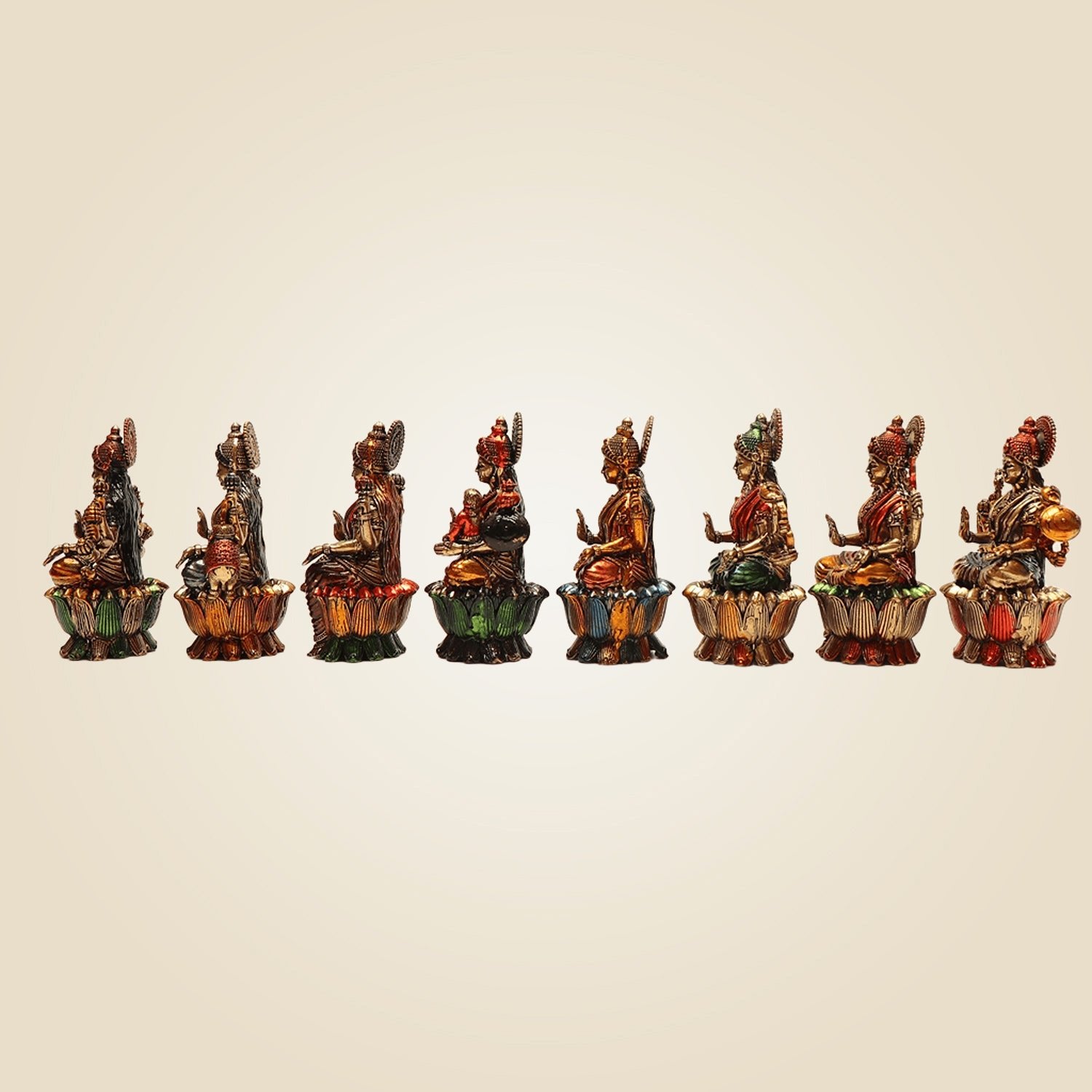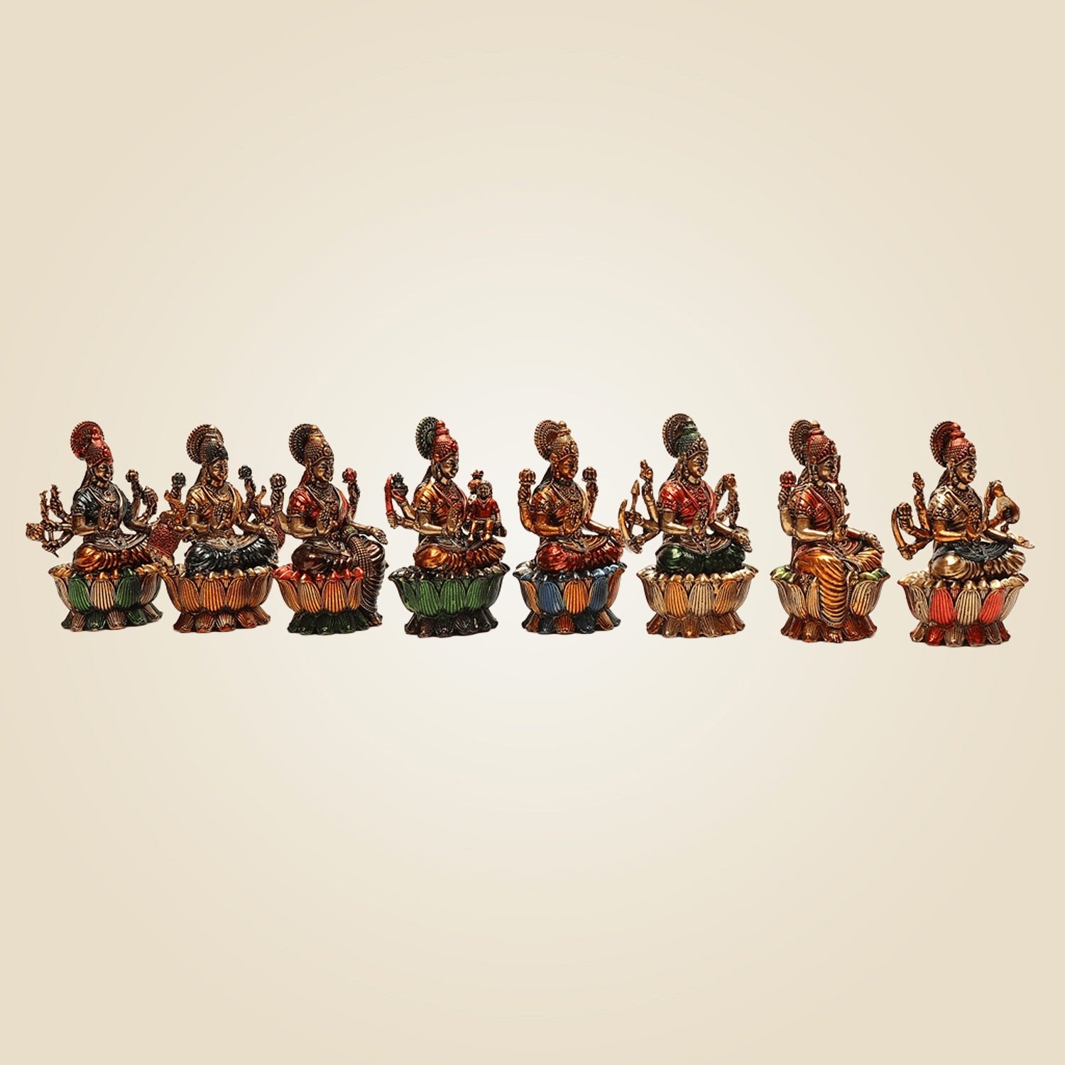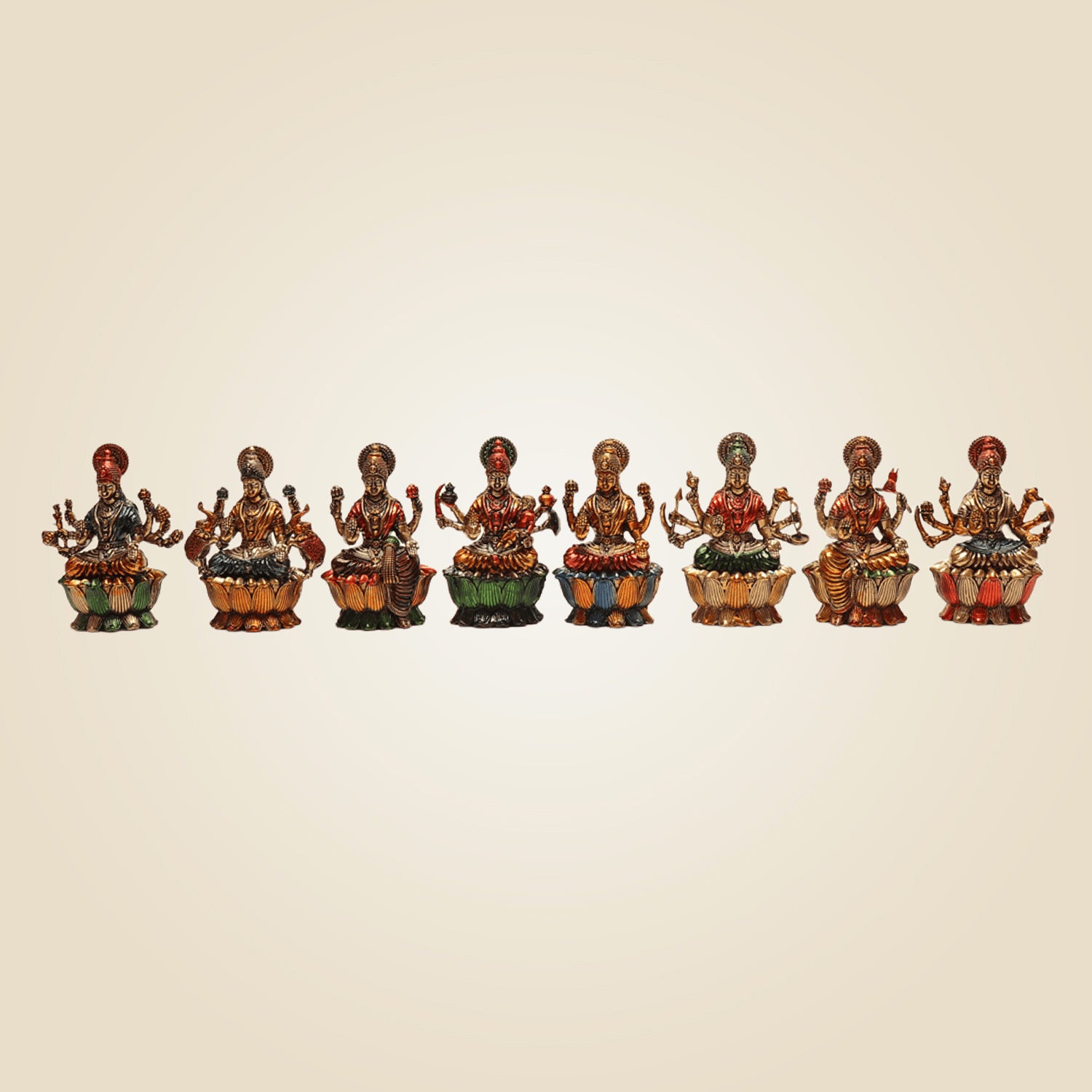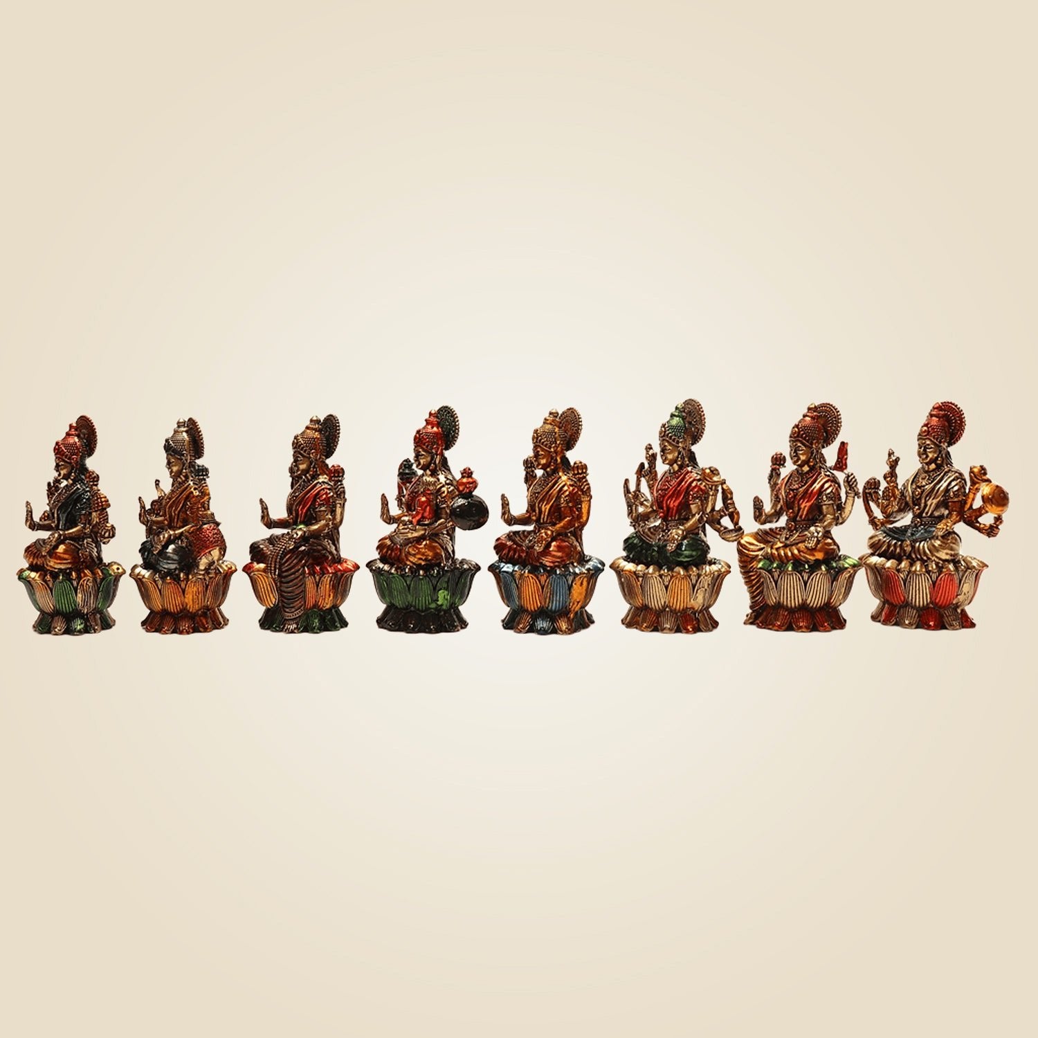 Brass Ashtalakshmi Idol Set – 8 Goddess Statues with Lotus Base 3" Each