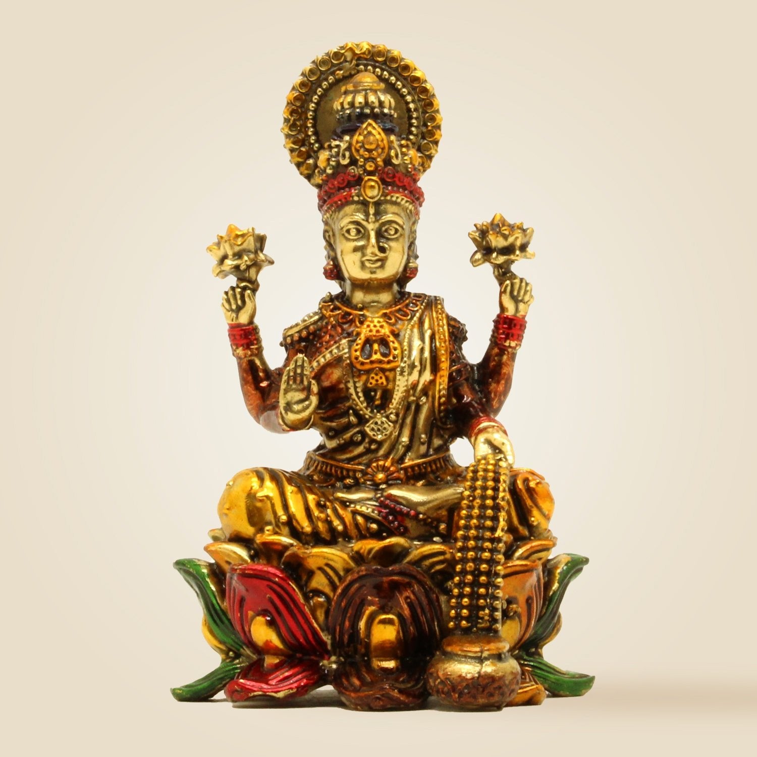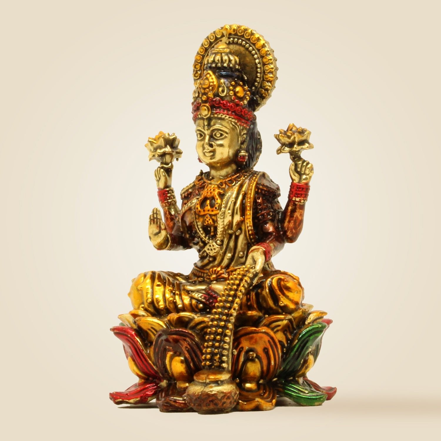 Laxmi Maa on Lotus Idol- 4.25" Handcrafted Brass Wealth Statue