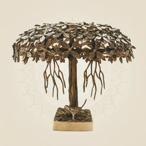 Brass Kalpavriksha Tree of Life Table Decor Measures 15 inches and elevates the look of any space instantly.  As it is the Kalpavriksha Tree of Life, therefore, it symbolises prosperity and harmony. It is not just an elegant but also a meaningful piece for homes, offices or workspaces.  Its size makes it perfect for use as a centrepiece. It can be used in living rooms, offices, and entrances. Furthermore, those who practise meditation or yoga can also use this piece there.