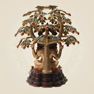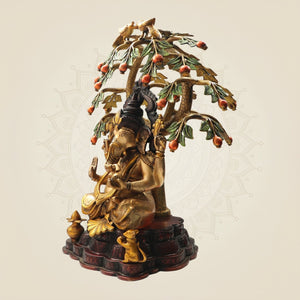 24.5" Brass Ganesha with Tree – Perfect Blend of Art and Spirituality